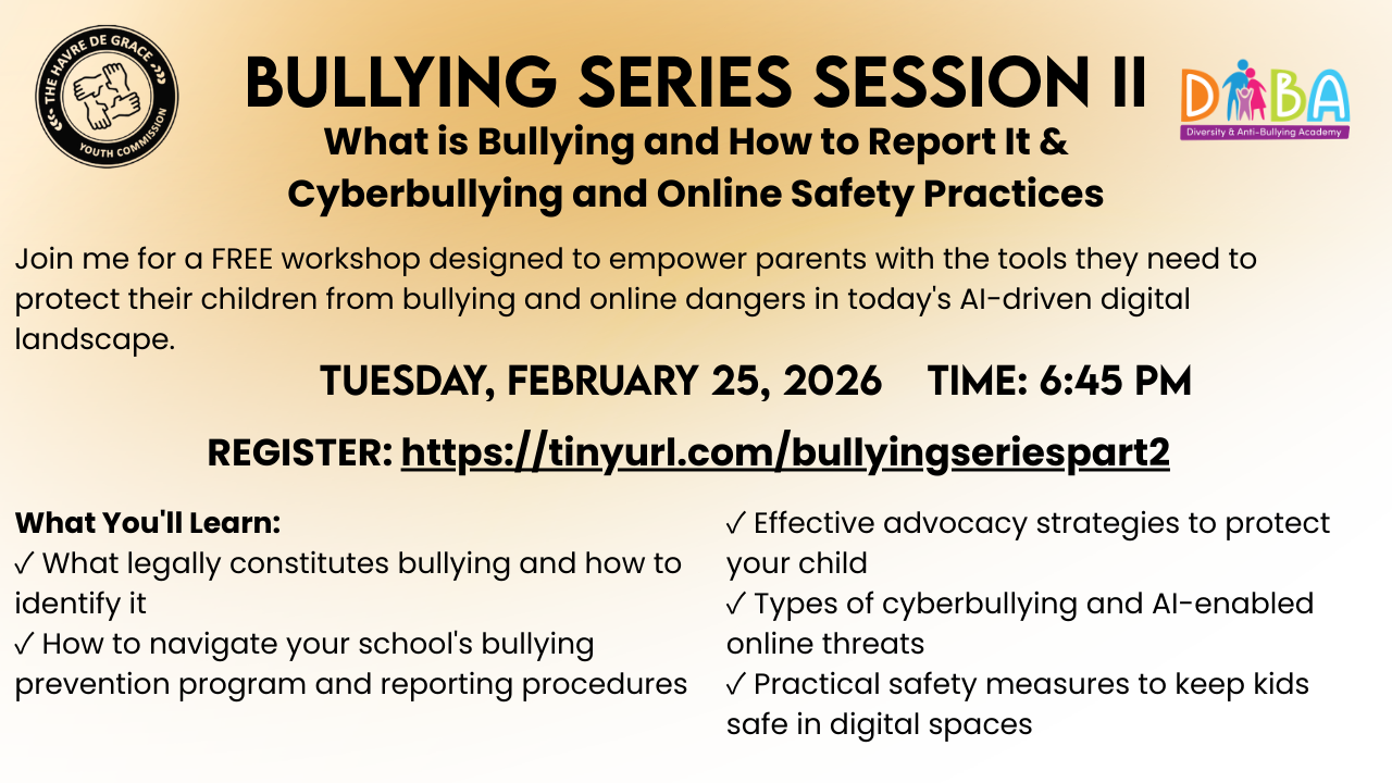 UPCOMING WORKSHOP: Stop Bullying Series in Havre de Grace, MD